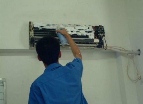 | 新乐空调维修师傅给新乐用户上门维修清洗空调。 |
